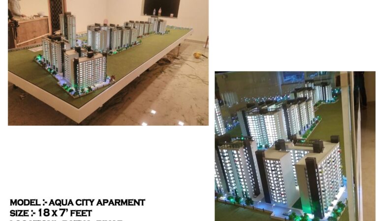 A grand-scale architectural model of Aqua City Apartment, representing a premium residential township in Patna. With a size of 18′ x 7′, this model captures the full scope of the project’s master plan — ideal for real estate exhibitions, investor showcases, and township approvals.