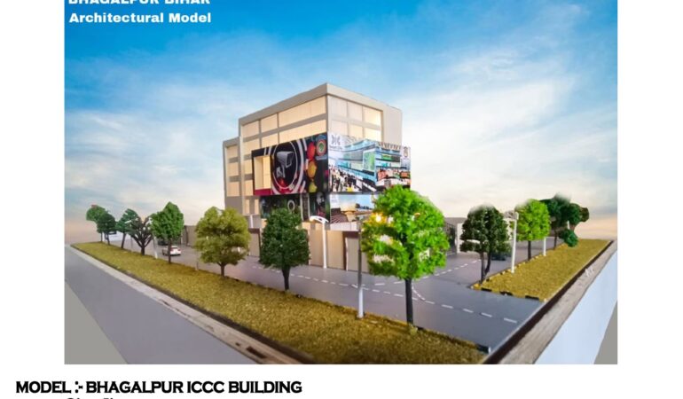 This detailed scale model represents the ICCC (Integrated Command and Control Centre) building designed for Bhagalpur Smart City. Crafted at a size of 3 feet by 4 feet, the model showcases the architectural design, landscape, and site planning with high precision.