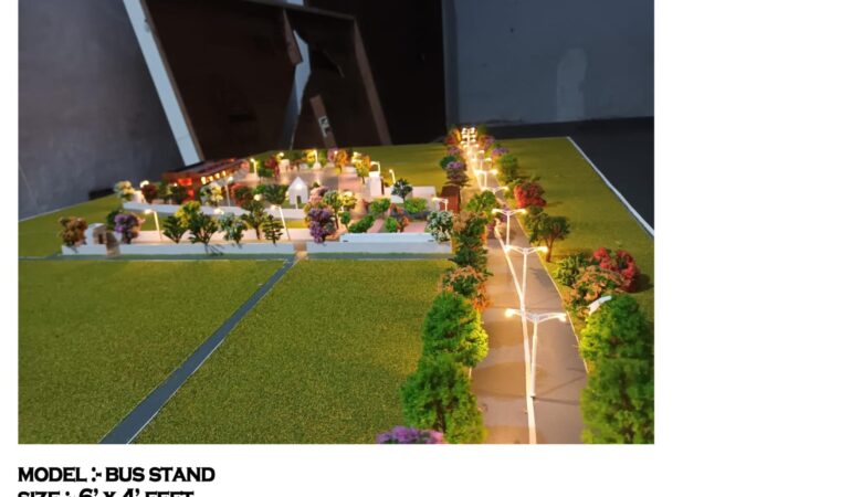 A large-scale architectural model of the Bihar Sharif Bus Stand, crafted with a 6′ x 4′ footprint, designed to represent the future of public transport infrastructure in the region. This model is ideal for public display, government presentations, and project approvals.
